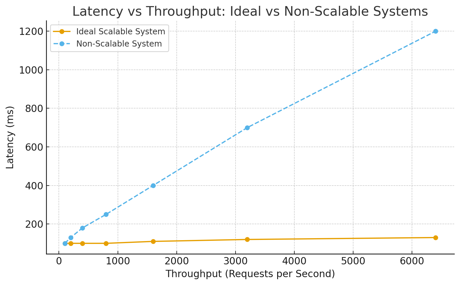 Imagine you have a website that works well initially when there aren’t many users. But over time, as the number of users increases, it becomes very slow , sometimes even unreachable. That means it’s time to think about scaling. Scaling means that as throughput increases, the response time (latency) should not increase, and the system should continue working as efficiently as before.